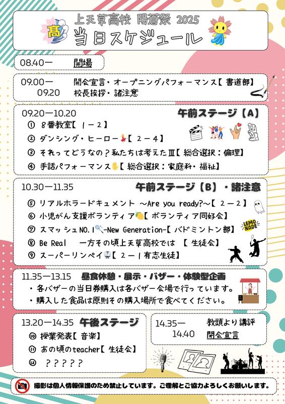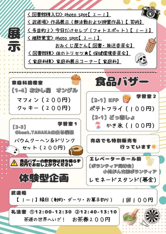 開催日時や見どころ、各クラス・団体の企画内容など、当日のすべてが詰まっています。