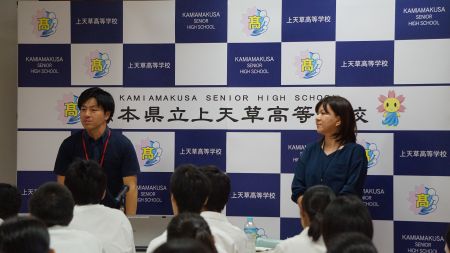 現在取り組まれている上天草市の支援策に、上天草高校の創造力と行動力が加わることを期待されています。生徒には『課題を見つけ、高校生ならではの取組をしてほしい』と願いとエールを送られました。