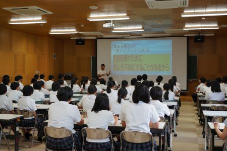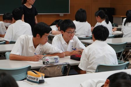 講師の先生の話をしっかり聞いて、自分の意見や考えを話し、表現することがテーマになっています。