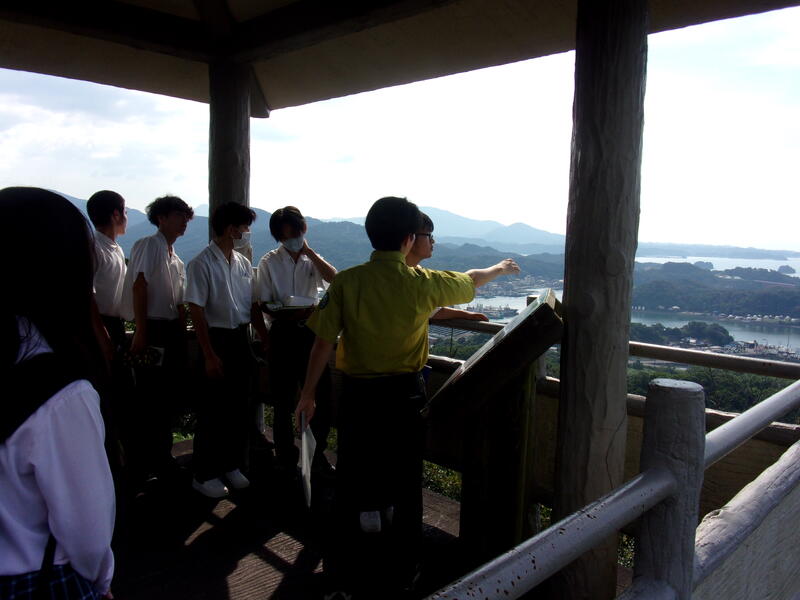 その後は高舞登山へ移動。山頂からは天草五橋を一望でき、青い海と島々が織りなす天草の雄大な景色を目にして、生徒たちは「こんな素晴らしい自然の中で生活しているんだ」と改めて感じることができました。