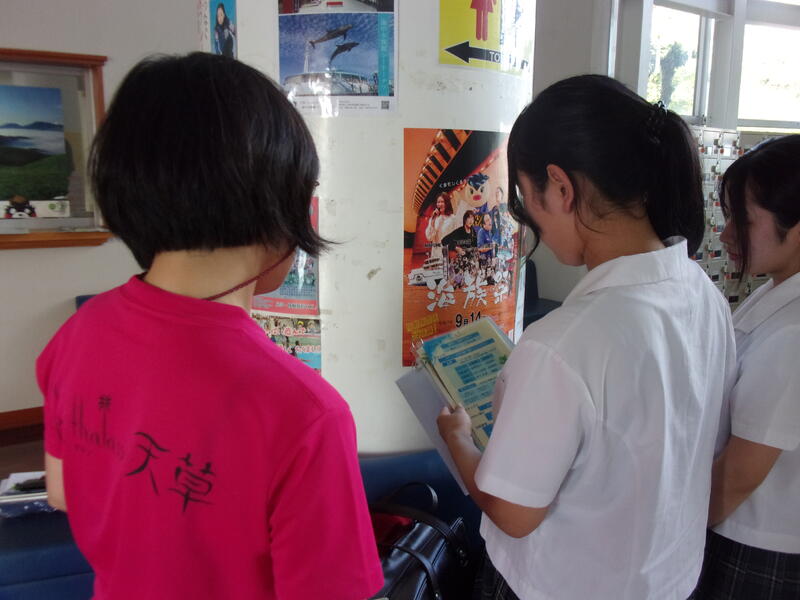 「観光施設の多言語化に取り組み、上天草市の観光に貢献したい!」という目標を掲げた2名の生徒が課題研究に取り組みました。