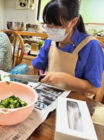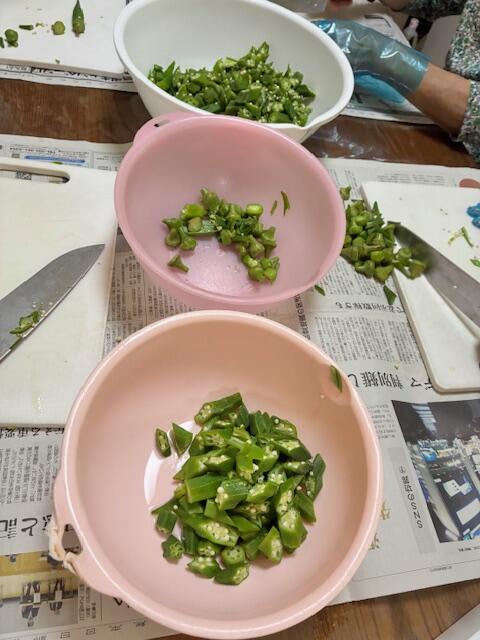 今日は、「オクラの和え物」を利用者様と一緒に調理していました。
