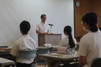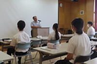 学校長・学年主任から学校の代表として頑張ってほしいという激励の後、進路指導主事より受験に当たっての諸注意が行われました。