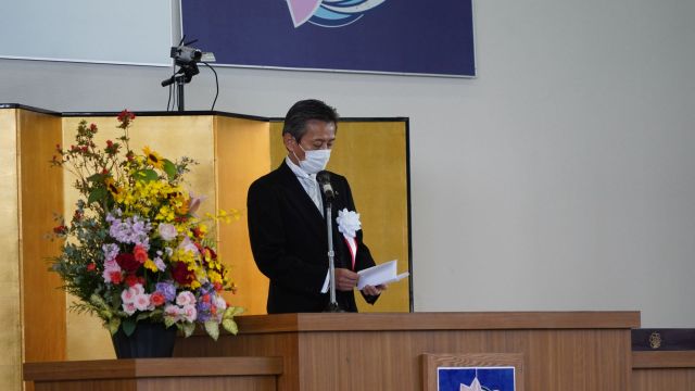 上天草高校の校訓は「叡智、信義、敬愛」。「叡智」は深く優れた知識。「信義」は真心を持って約束を守り、勤めを果たすこと。「敬愛」は、相手を尊敬し、親しみの心持つという意味。これらの校訓を大切にしながら、卒業するときに振り返り、これだけ成長できたと実感できる三年間を送って欲しいと話されました。
