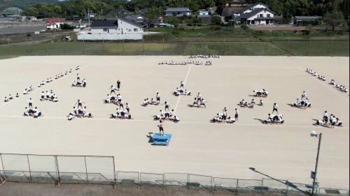 1年生は「上天草体操」。2・3年生は「組体操」の練習です。