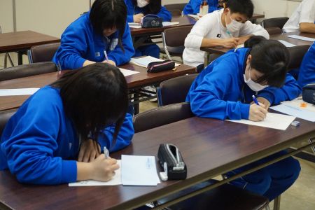 これから高校生活で頑張りたいことや目標など、日頃照れて話せないことを文章にまとめ、一文字、一文字丁寧に書いていました。
