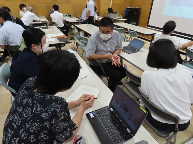 2つ目のテーマ「第三次とりまとめに示された理論と実践に関すること」では「人権が尊重される授業づくり」をテーマに班別協議をおこないました。どの班も積極的に意見交換が行われており、これまでの自らの授業の振り返りとともに、互いに学び合う貴重な時間となりました。