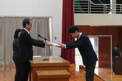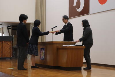 終業式の前に行われた表彰式では、学業や芸術、スポーツ等において優秀な成績を収めた生徒が表彰されました。