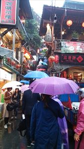 九份老街を散策 投稿日時 : 2015/12/16 学校サイト管理者 台北市内で天心をいただいたあと、ジブリ作品のモデルになったと言われている九份に参りました。残念ながら雨が降りだしましたが、昔の日本を感じさせる建物が非常に幻想的です。