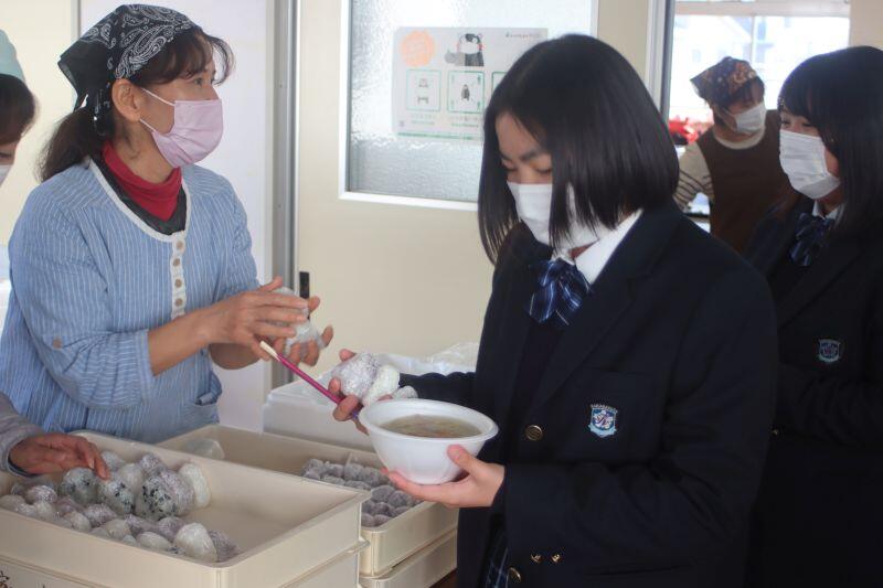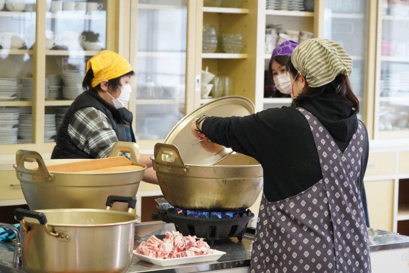 ゴールをした生徒は制服に着替え、お母さんたち手作りの温かい料理をいただきます。