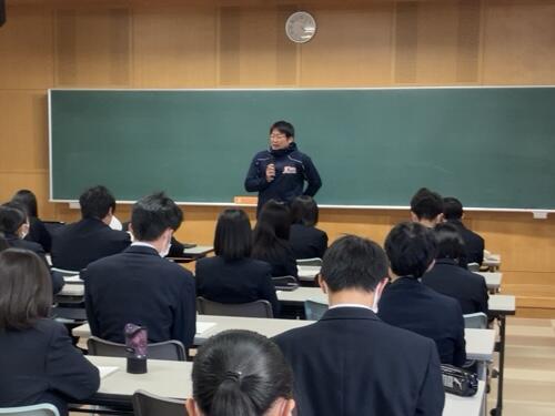 生徒指導部の富岡先生からは、旅行中の注意事項をはじめ、人の話をしっかり聞くことやルールを守って行動することが、事件に巻き込まれることを防いだり、自分たちの命を守ることにつながると、注意事項を守って行動することの大切さを教えていただきました。