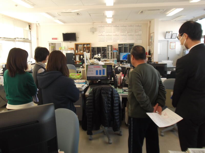 職員室では、多くの先生方が画面越しに生徒の出番を今か今かと見守っていました。