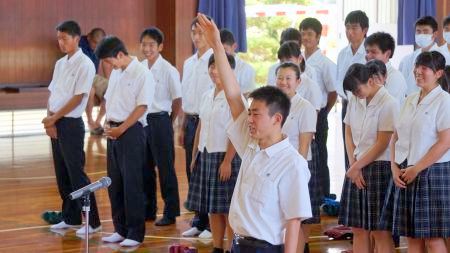 校長先生、生徒会からの激励の言葉がおくられ、そして選手宣誓。