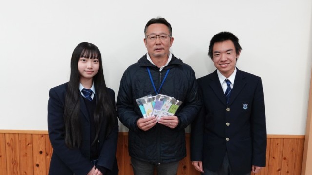 このたび栞が完成し、天草四郎観光協会 事務局長の杉本様をお招きして、生徒より完成品をお預けしました。湯島天満宮は“学問の神様”として広く知られ、学業成就を願う参拝者や読書を楽しまれる方が多く訪れます。昨年度の栞配布も大変好評をいただき、生徒にとって大きな励みとなりました。