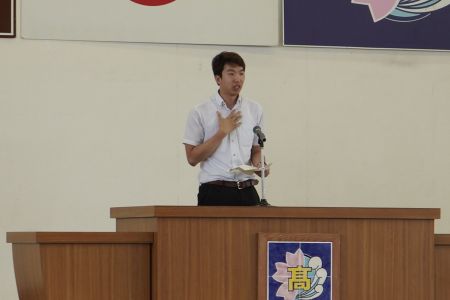 ジャスティン先生は壇上で、スティーブ・ジョブズのスピーチの言葉を生徒に贈って下さいました。
