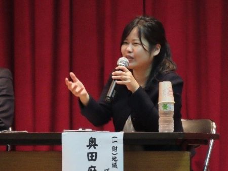 講師としてお招きしたのは、(一財)地域・教育魅力化プラットフォームの奥田 麻依子様。奥田さんは、高校魅力化の元祖と言われる「隠岐島前高校」でコーディネーターとして6年間勤務され、カリキュラムの開発・運営に参画してこられました。今回は、「自分と地域の未来をつくる学び」というテーマで、講演およびパネルディスカッションを実施していただきました。