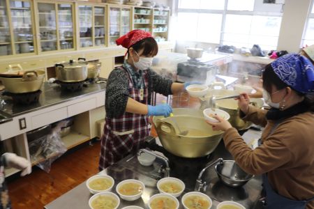 ゴール後は保護者の皆様から豚汁とおにぎりが振る舞われました。