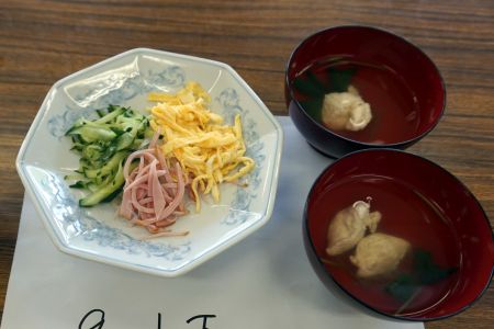 目に鮮やかな涼拌絲。だしの利いた吉野鶏のお吸い物。