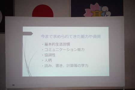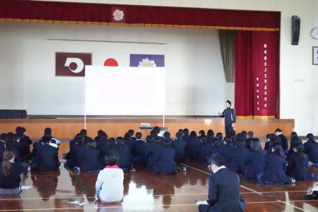 上級学校進学を希望する生徒を対象とし、起業家教育等、地域を愛し未来を切り拓くリーダー育成を目指す「グローカル文理コース」の説明がされました。