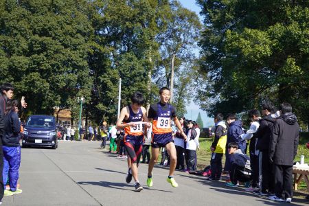 男子チームも他の部活動からの応援出場した生徒もおり、緊張感の中で襷をつなぎました。