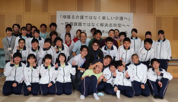 生徒からも笑顔があふれ、今回のテーマである「楽しい介護」を実践できたようです。