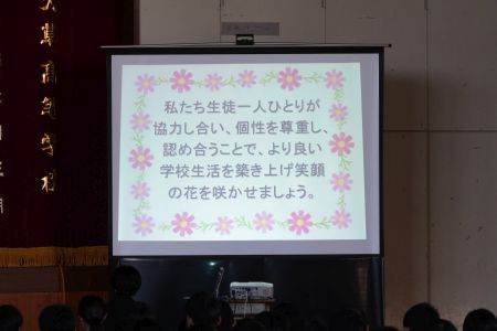 生徒会が中心となって、いじめ防止全校集会が行なわれました。