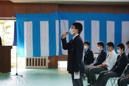 新入生代表あいさつは、1年生を代表して宮﨑君が行ないました。