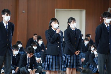 休校中の生活を振り返り、生活のリズムの立て直しをお話しされるとともに、ウイルス拡大防止の取り組みをお話しされました。