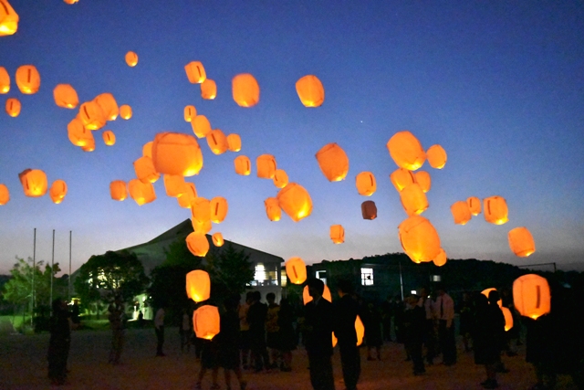 そのワンシーンで「スカイランタン」をあげるシーンがあり、有志生徒の協力で撮影がおこなわれました。