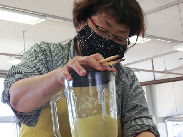 講師に「みずの果樹園」の水野 美奈子 様を招き、家庭科室で試作開始。