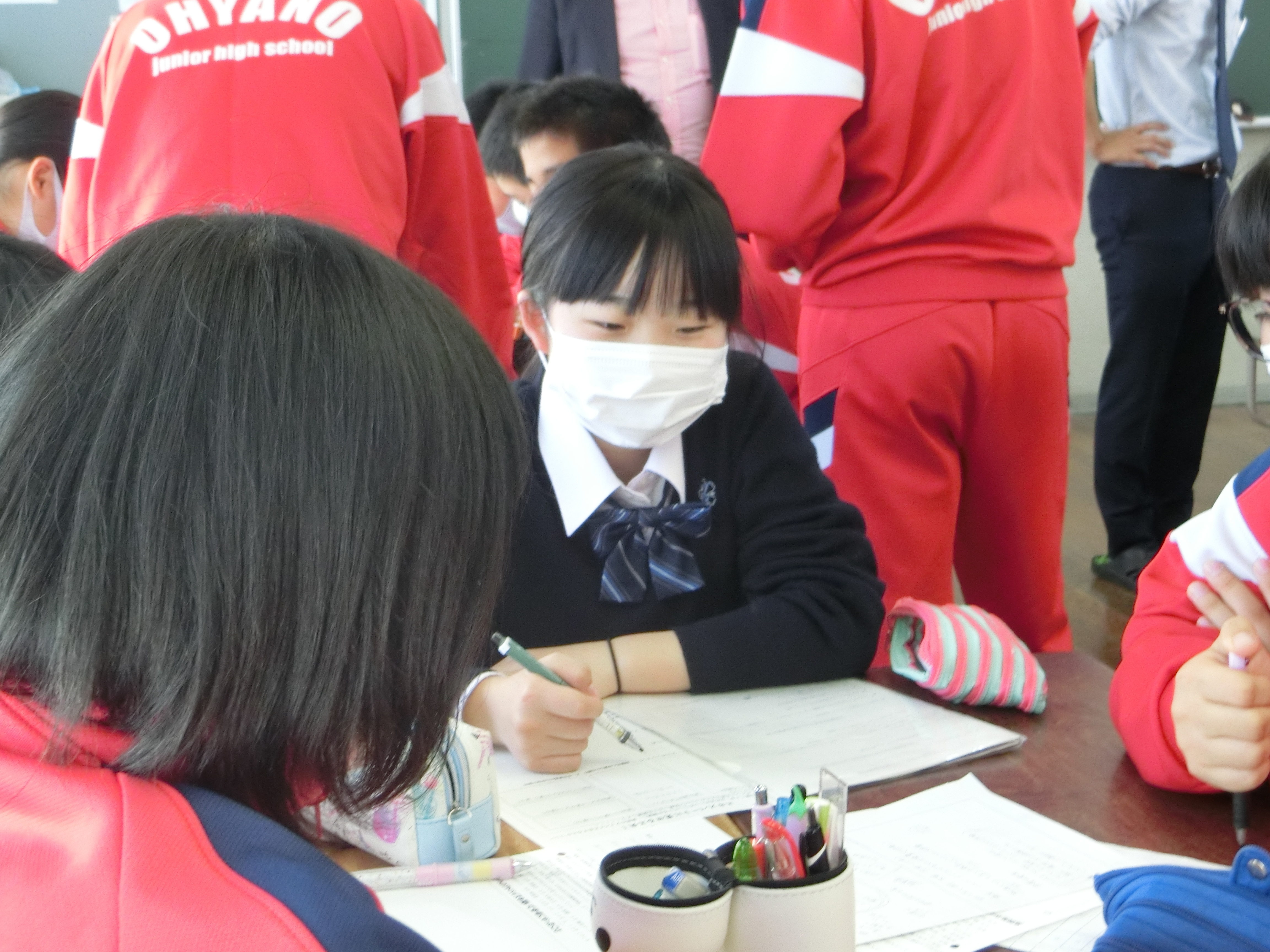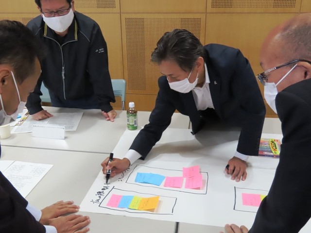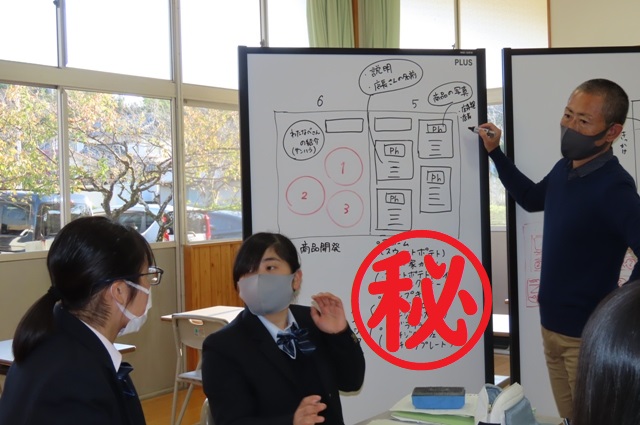 大矢野中学校の皆さんは、クラス毎にビジネスプランを作成されており、各クラスで会計部や広報部などの部署に分かれて研究を進めていらっしゃいました。
