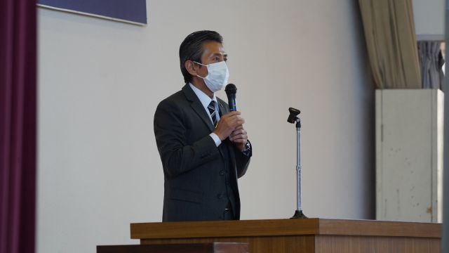 生徒の成長した姿を楽しみにしていることを伝え、3学期の終業式の訓話を送られました。