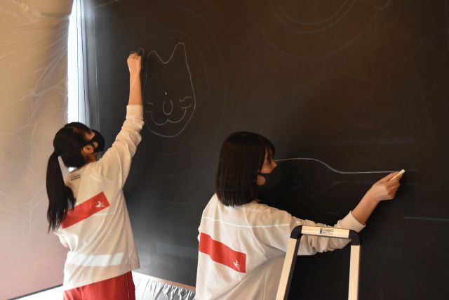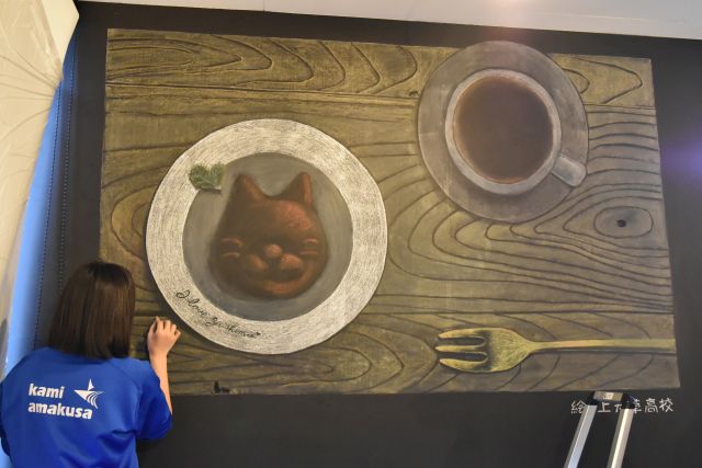 店主の高橋さんは、大矢野高校時代の卒業生。初回のチョークアートに続き「第2弾も後輩たちに手がけてほしい」とのことでお話しをいただきました。