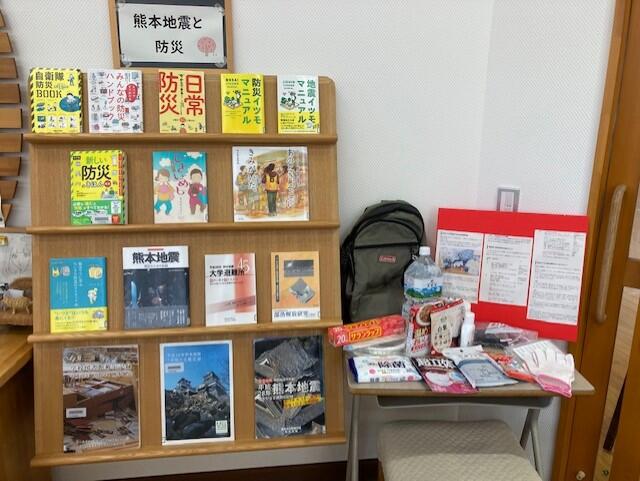 図書館では「熊本地震と防災」というテーマの展示をしています