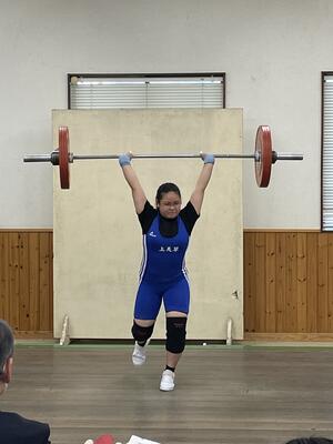 女子+64㎏級2年 須﨑 スナッチ53㎏ クリーン&ジャーク70㎏ お祝い 九州大会出場権獲得
