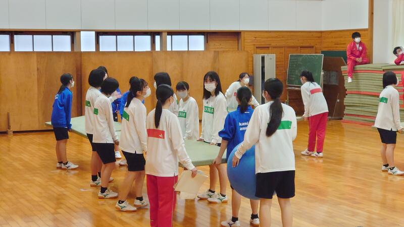 本日の体育大会の練習も、体育館と武道場に分かれ、団ごとに競技種目の練習です。