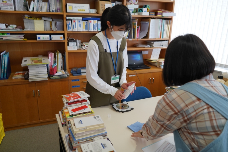 天草市立中央図書館にて貸出DVDのメンテナンス