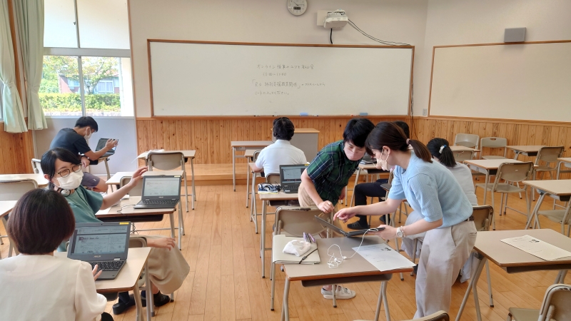 そこで「オンライン授業のコツを考える会」を開き、先生方と一緒に体験してみることで、気付きや課題、アイデアを出し合いました。