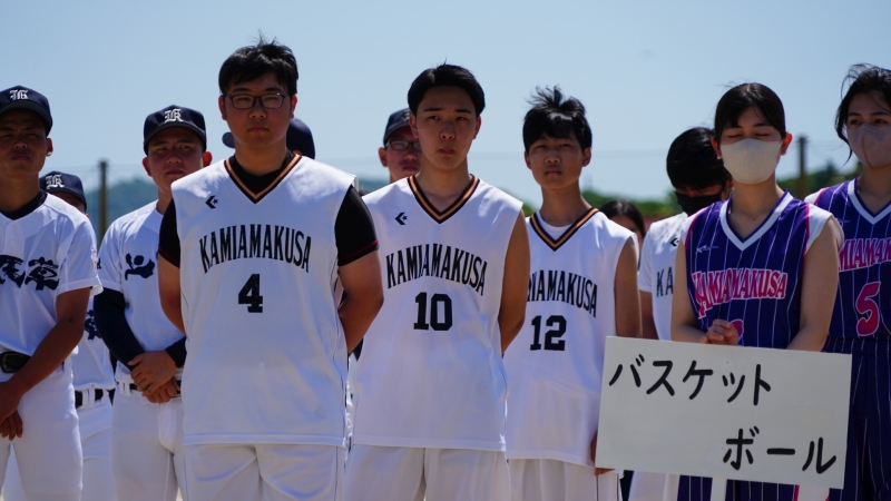 体育大会では、6月に行われる総体、総文と高校野球大会での活躍を願って激励会が行われました。