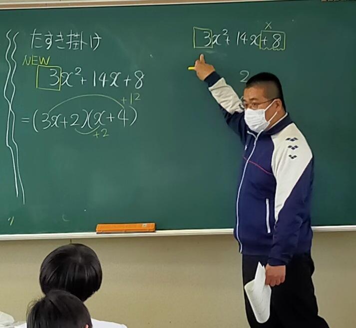 中学校では扱わない因数分解について、発言が多くあり活発な授業でした。