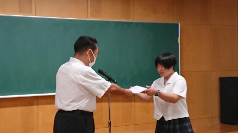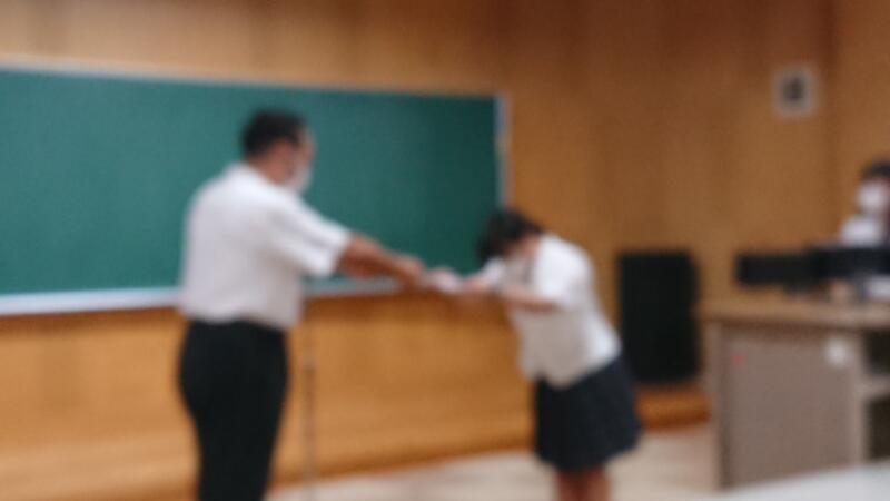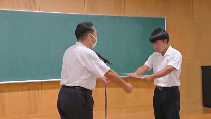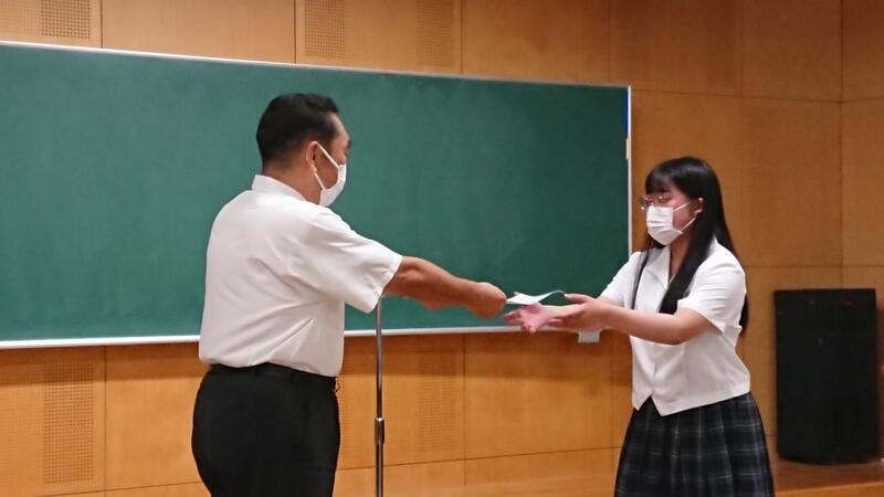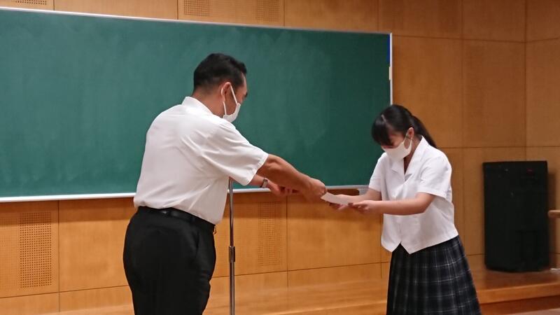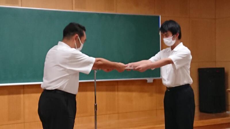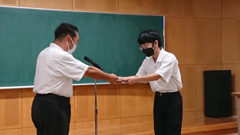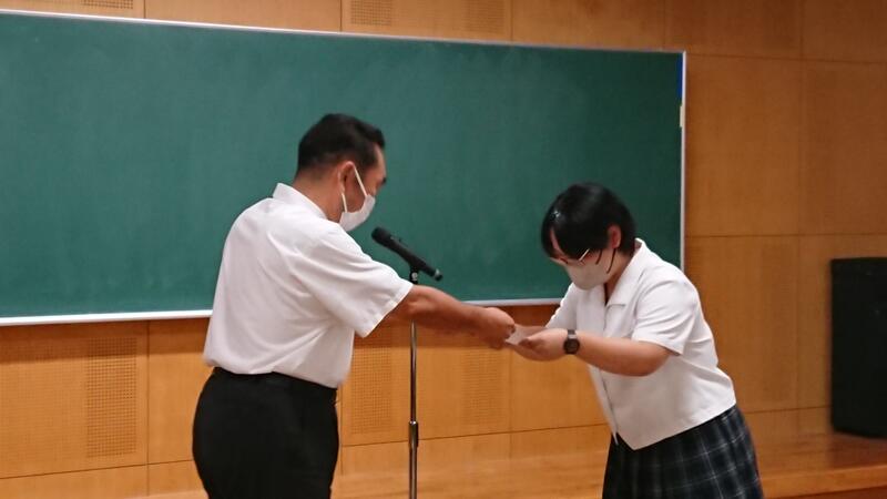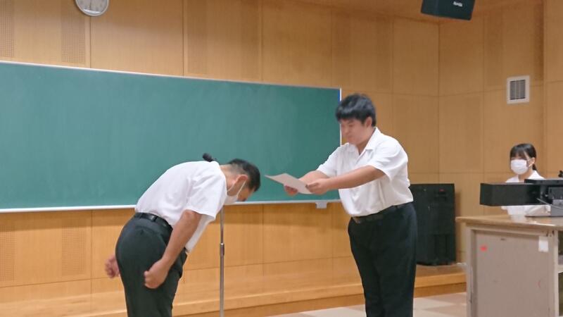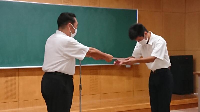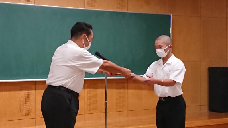 本日7月20日、終業式に先立ち、今年度の生徒会への感謝状贈呈式が行われました。コロナ禍が続く中、これまで1年間学校を引っ張ってきてくれた皆さんの日々の誠実な取組みに、心から感謝いたします。