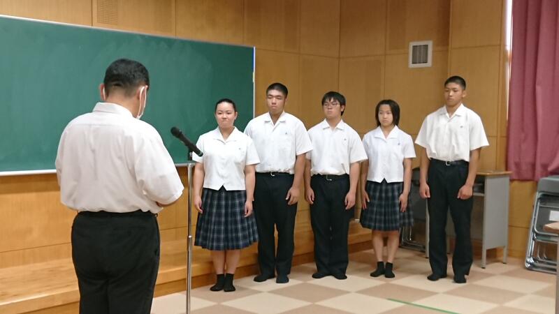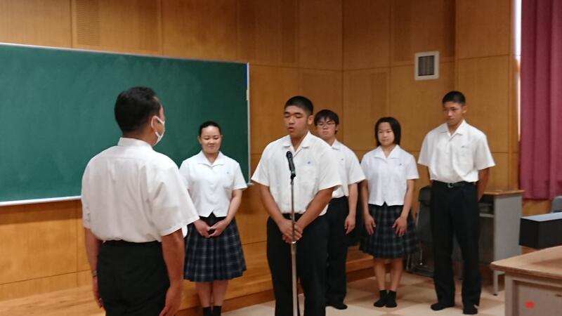 また、引き続き新生徒会のへの任命も校長先生から一人一人に行われました。これからの上天草高校をどうぞ宜しくお願いします。