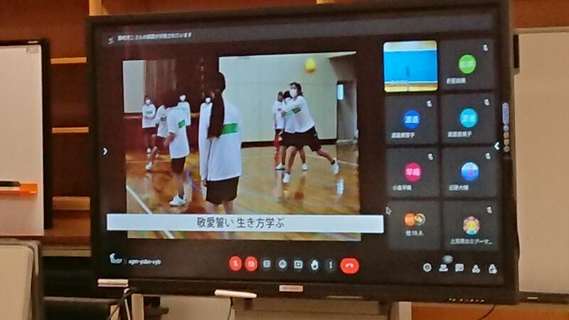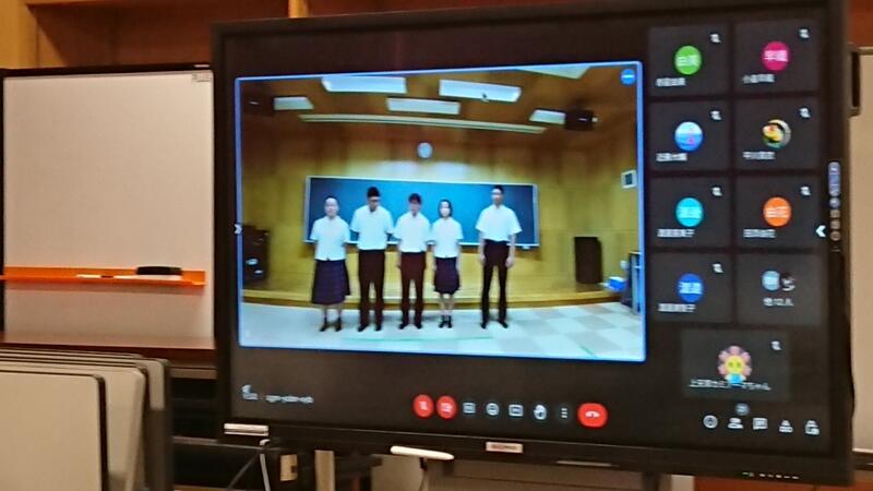 こちらでは、学校パンフレットを使った「学校紹介クイズ」とグローカル文理コースの授業である「異文化コミュニケーション」の学びの成果発表会(上天草クイズ)が行なわれました。