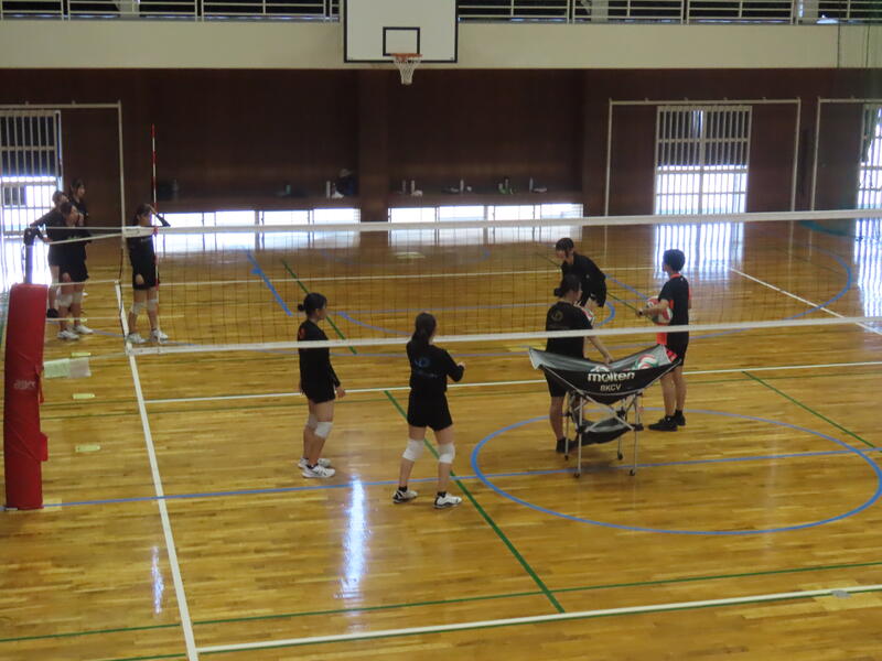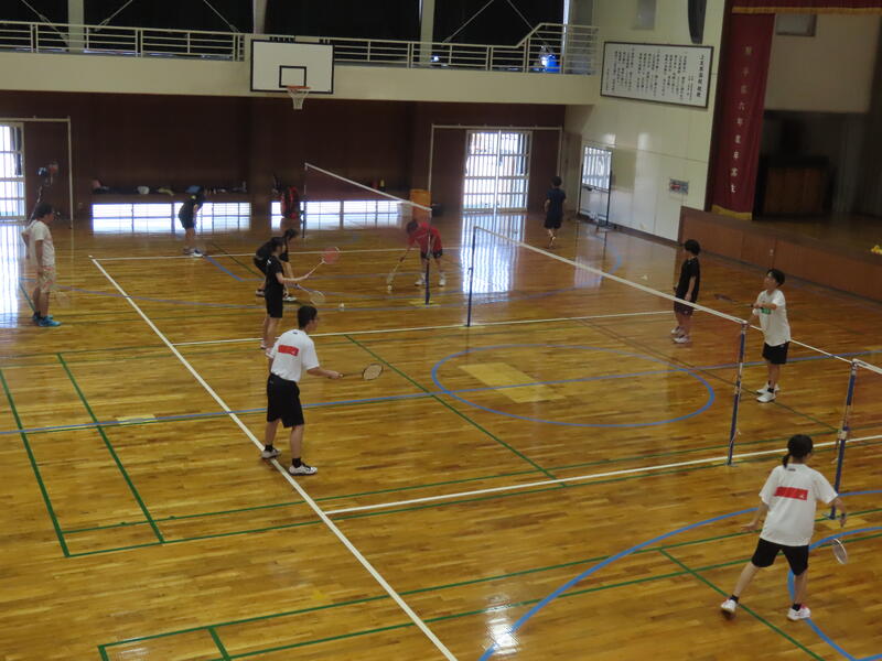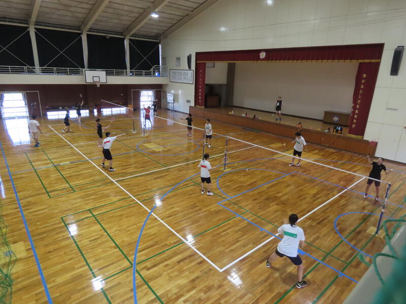 体育館を覗いてみると、バドミントン部・バレーボール部が元気に活動していました!