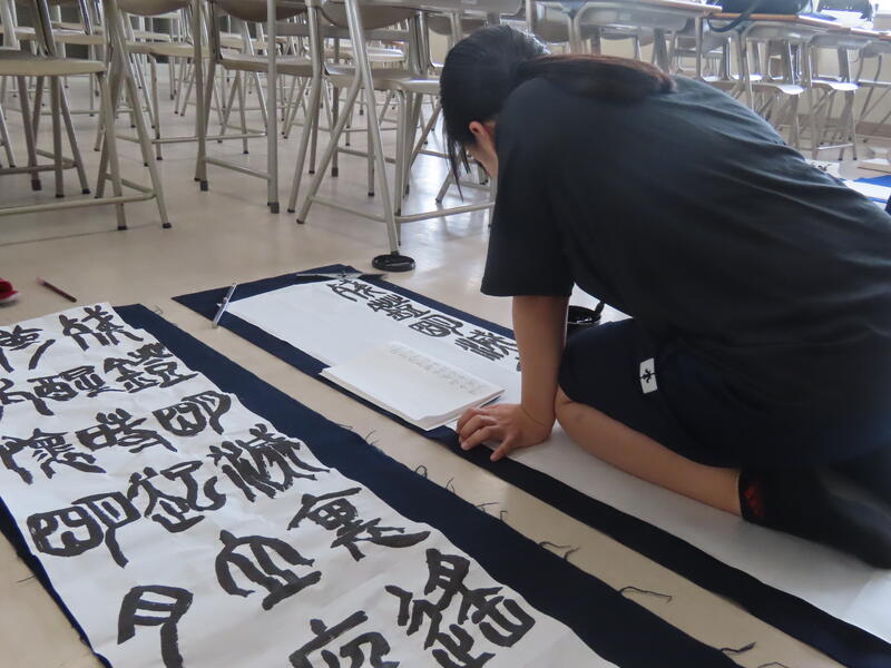作品展等の出品に向けて、日々の練習に励んでいる書道部。