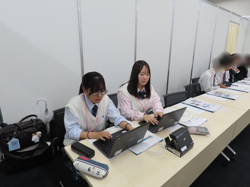 ▼プレゼンテーションの時間を前にして、緊張の面持ちの生徒たち。