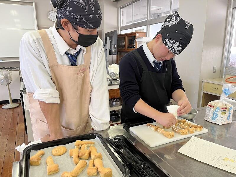 11月18日(月)に、3年福祉科でチンアナゴのスティックメロンパンを作りました。