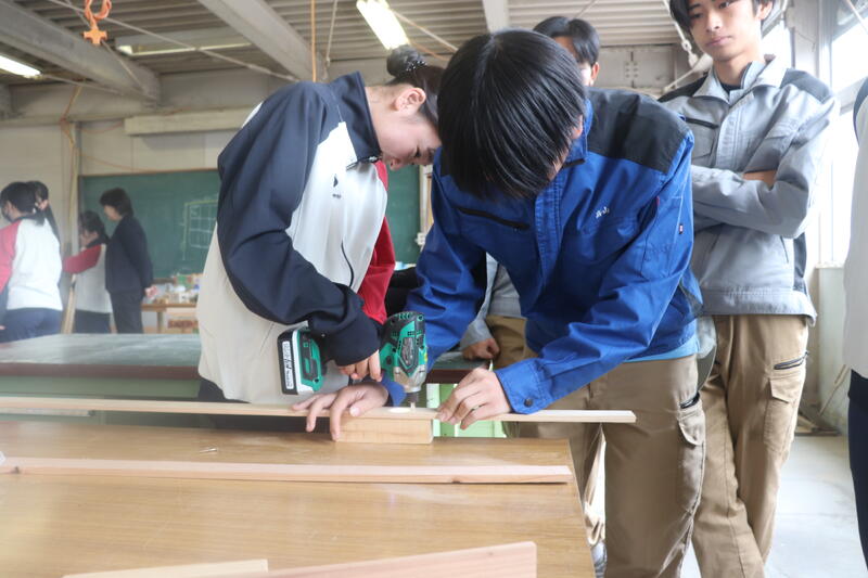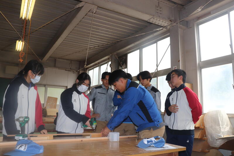 今回は3回目ということで、実際に矢部高校で福祉科の生徒のアイデアを基に、UDスポーツに使用するための木工製品を完成させていきました。