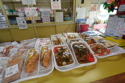 お弁当や総菜、焼きたてのパンにお菓子などが、所狭しと並んでいます。これらは地元の企業やお弁当屋さんが、毎日手作りで届けてくださっているもの。