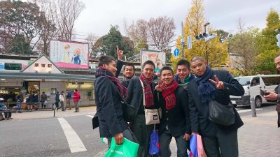 原宿駅の前で笑顔で一枚!